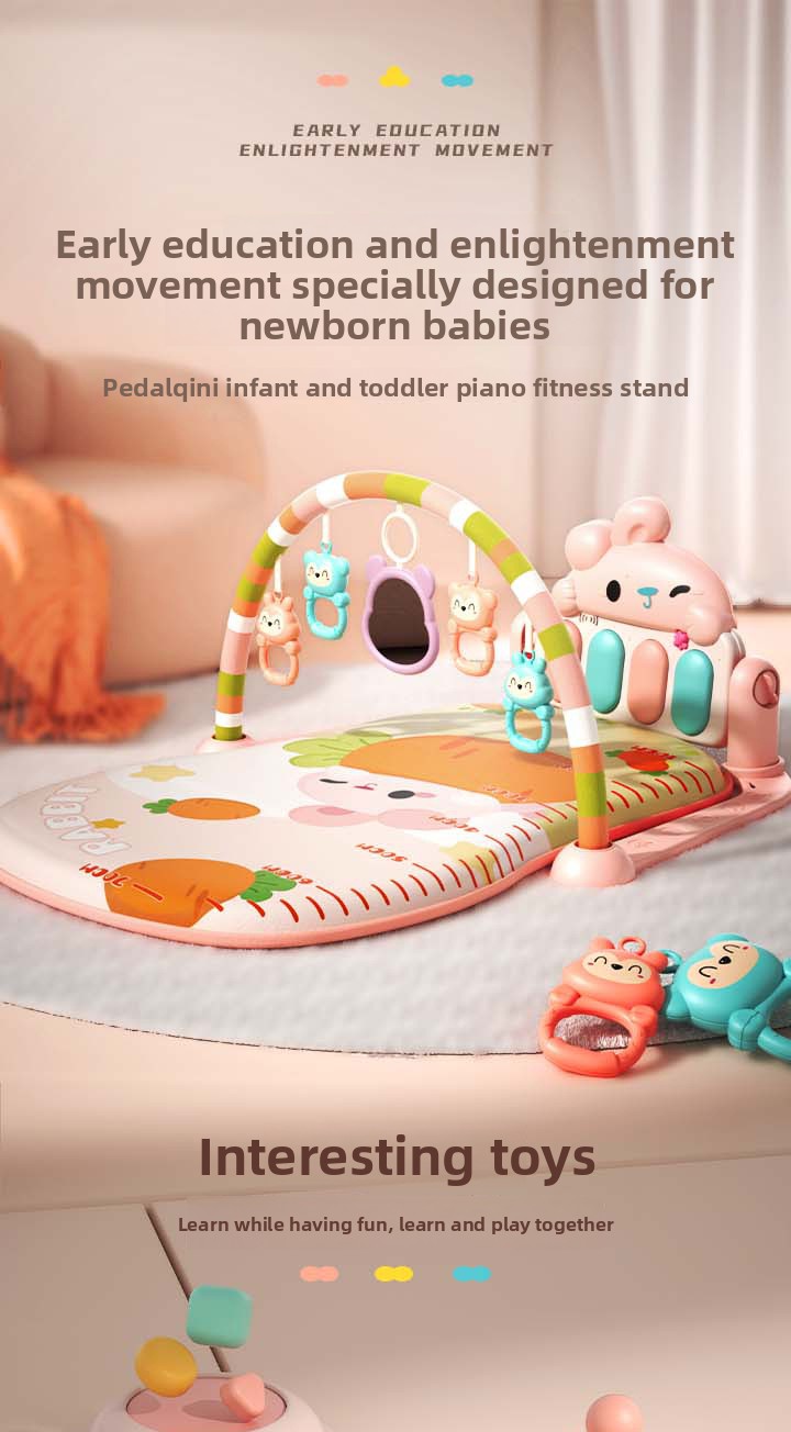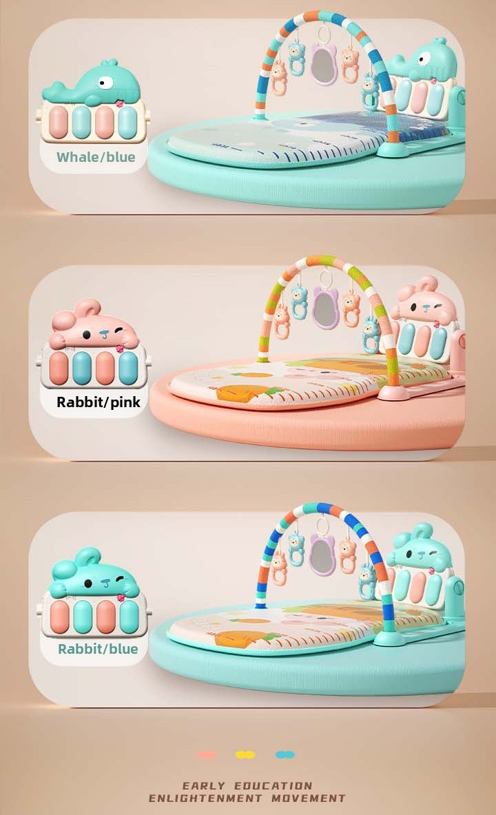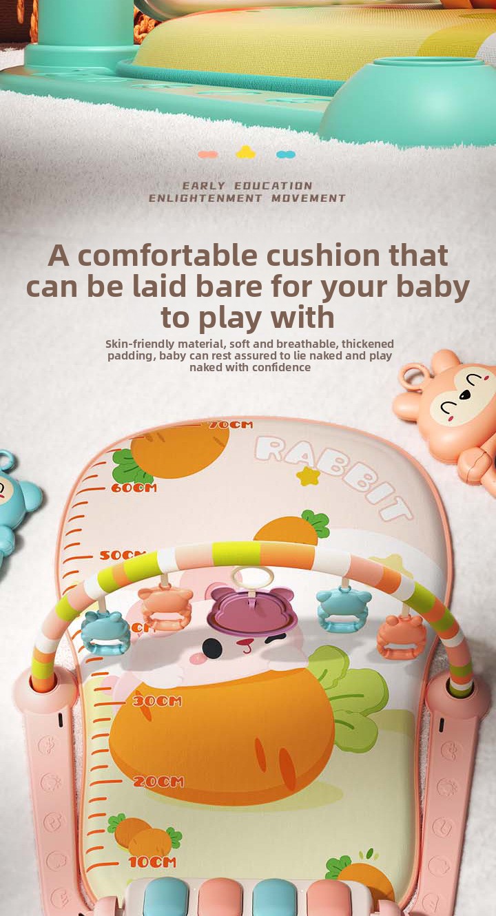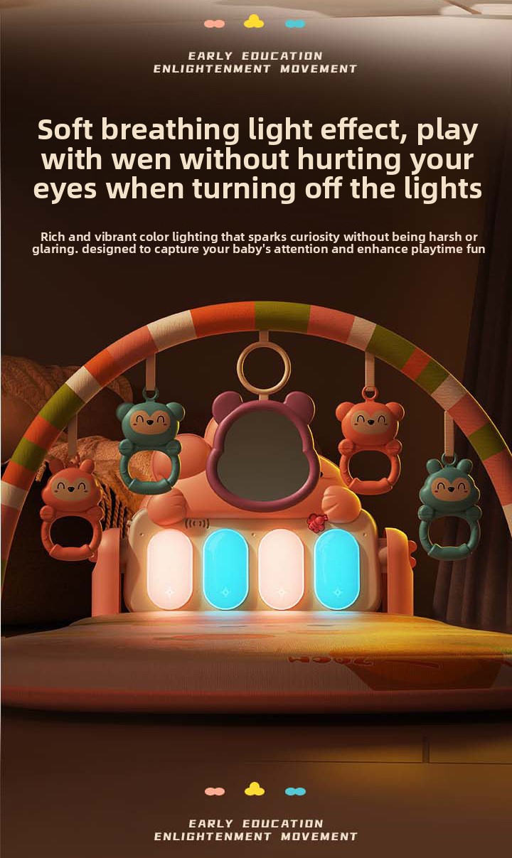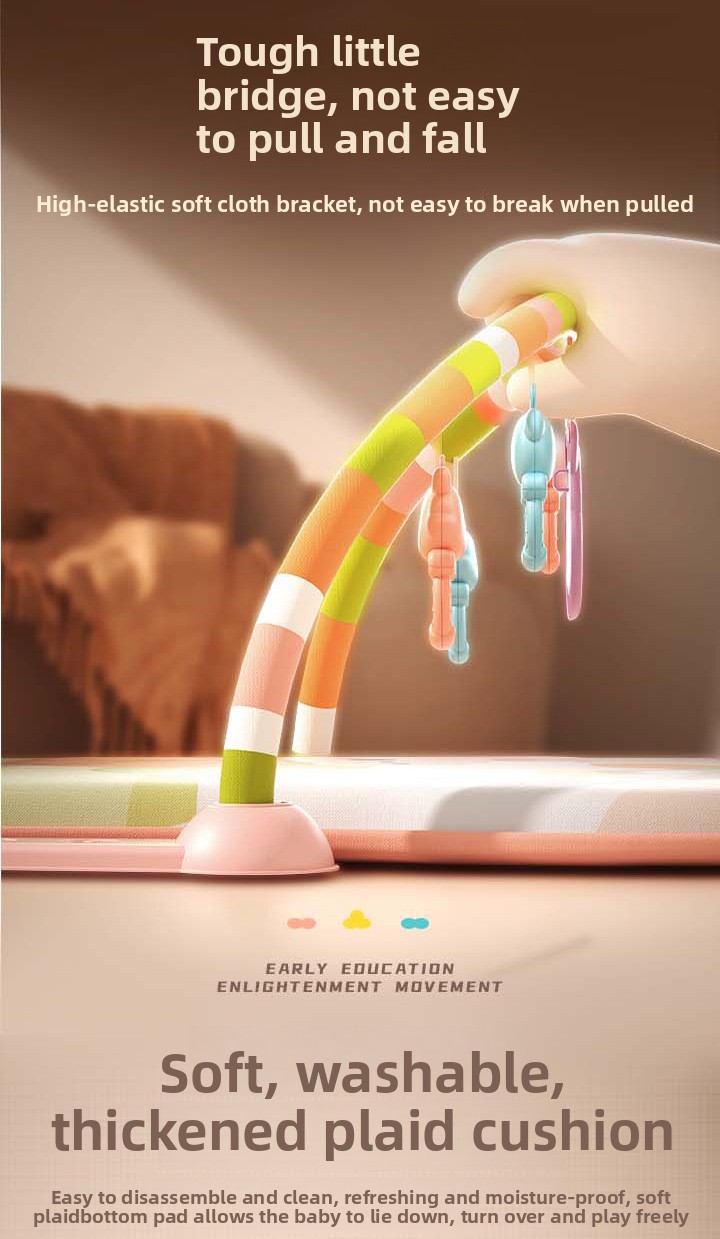 A baby play gym is a soft activity mat with overhead arches and interactive toys designed to support early development through sensory play, exploration, and movement. It creates a safe, engaging space for babies to explore sounds, colors, textures, and motion while strengthening muscles and building coordination.
