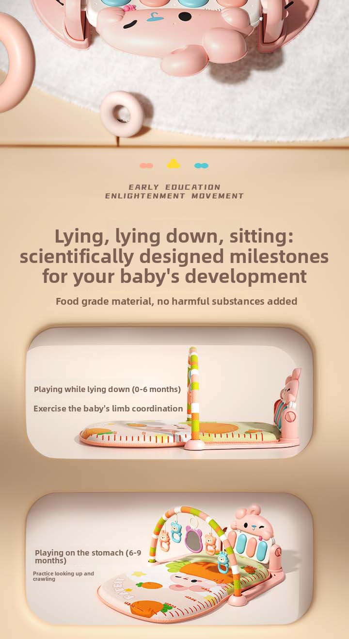 • 🌈 Interactive Play Mat: A padded, comfortable mat where babies can lie on their back or tummy for playtime and tummy time.